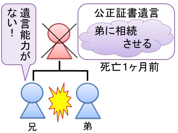 遺言の内容は、ほぼ全ての財産を弟Bに相続させるとの内容であり、兄Aは到底納得できない。兄Aは、弟Bに対して「母親は無くなる直前、アルツハイマー病に罹っていたのだから遺言などする能力は無い」と主張して紛争となった。